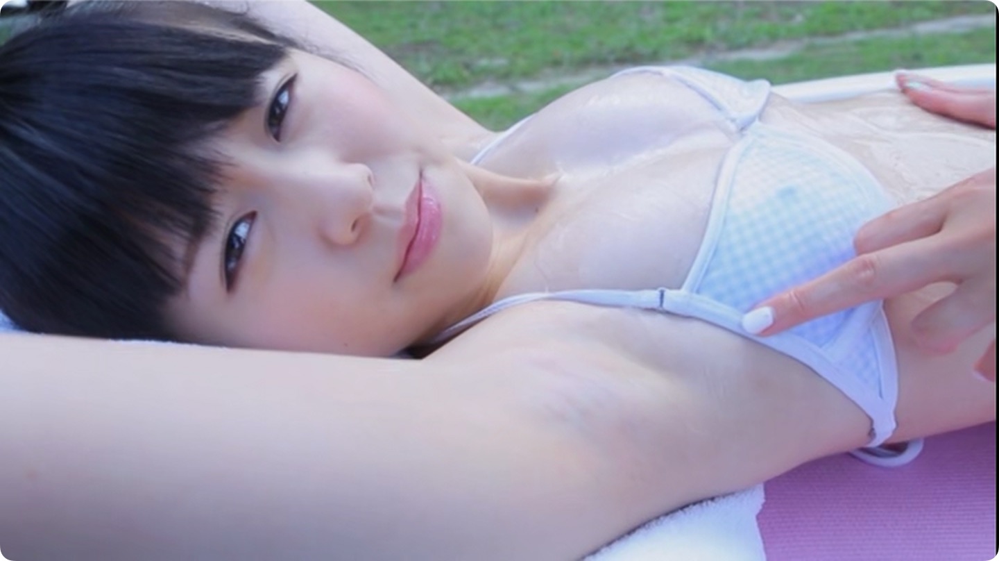 マッサージされちゃう。可愛いブラをつけてポッチしちゃってますね。
